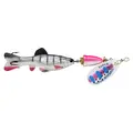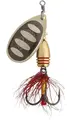 Kombinasjonen av farger og bevegelser frister selv den tregeste fisk til hugg. Noen av spinnerne har også fått lokkende fluekrok.